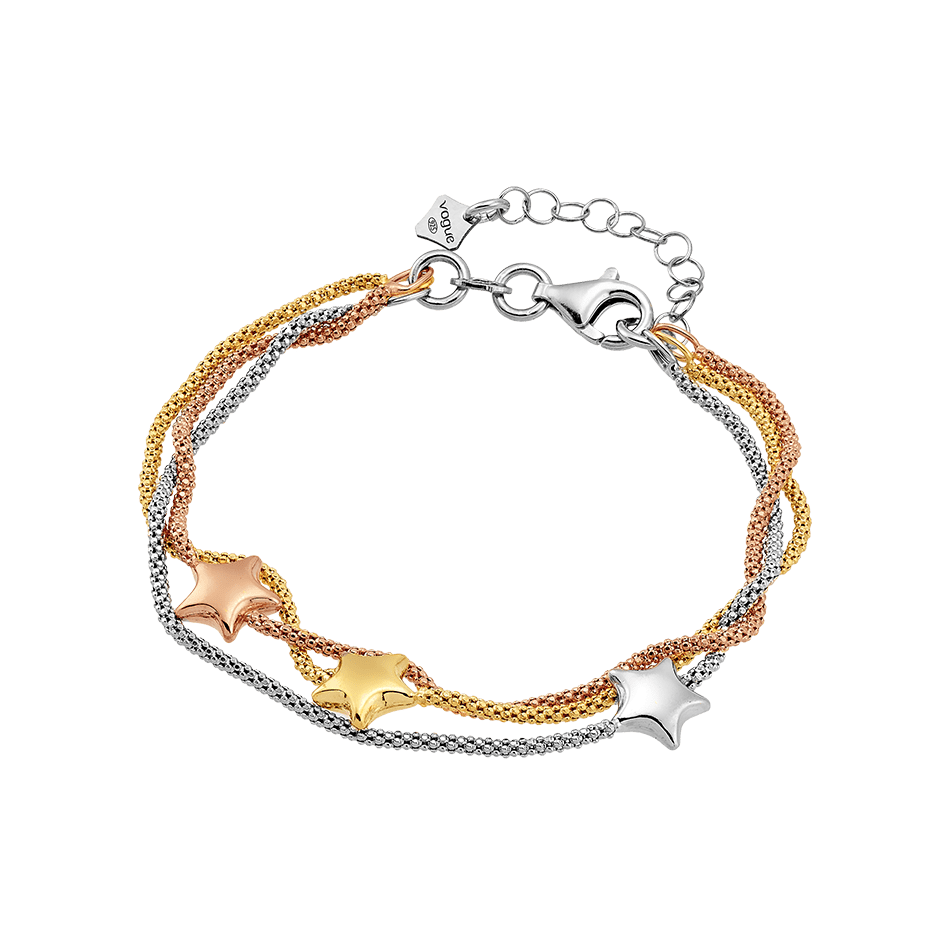 Βραχιόλι με τρεις αλυσίδες και αστέρια από Ασήμι 925 και επιμετάλλωση σε κίτρινο & ροζ χρυσό 18 καρατιών (18Κ), VOGUE.