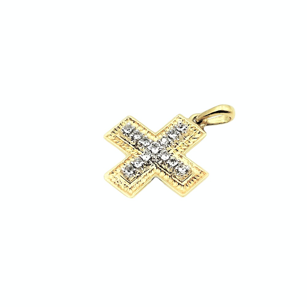 Σταυρός τετράγωνος γυναικείος δίχρωμος, από χρυσό Κ14 με λευκές πέτρες ζιργκόν.