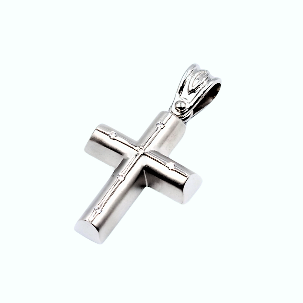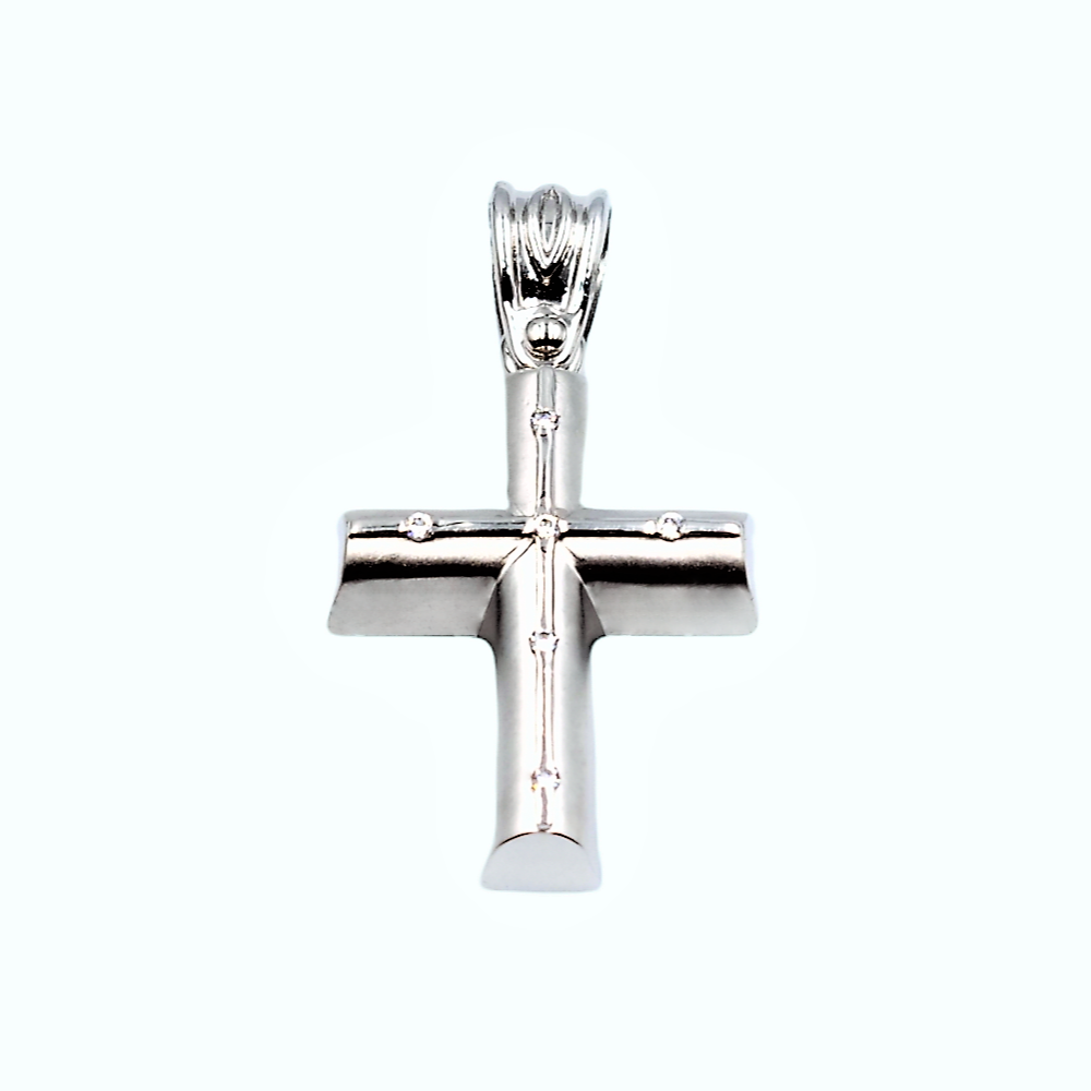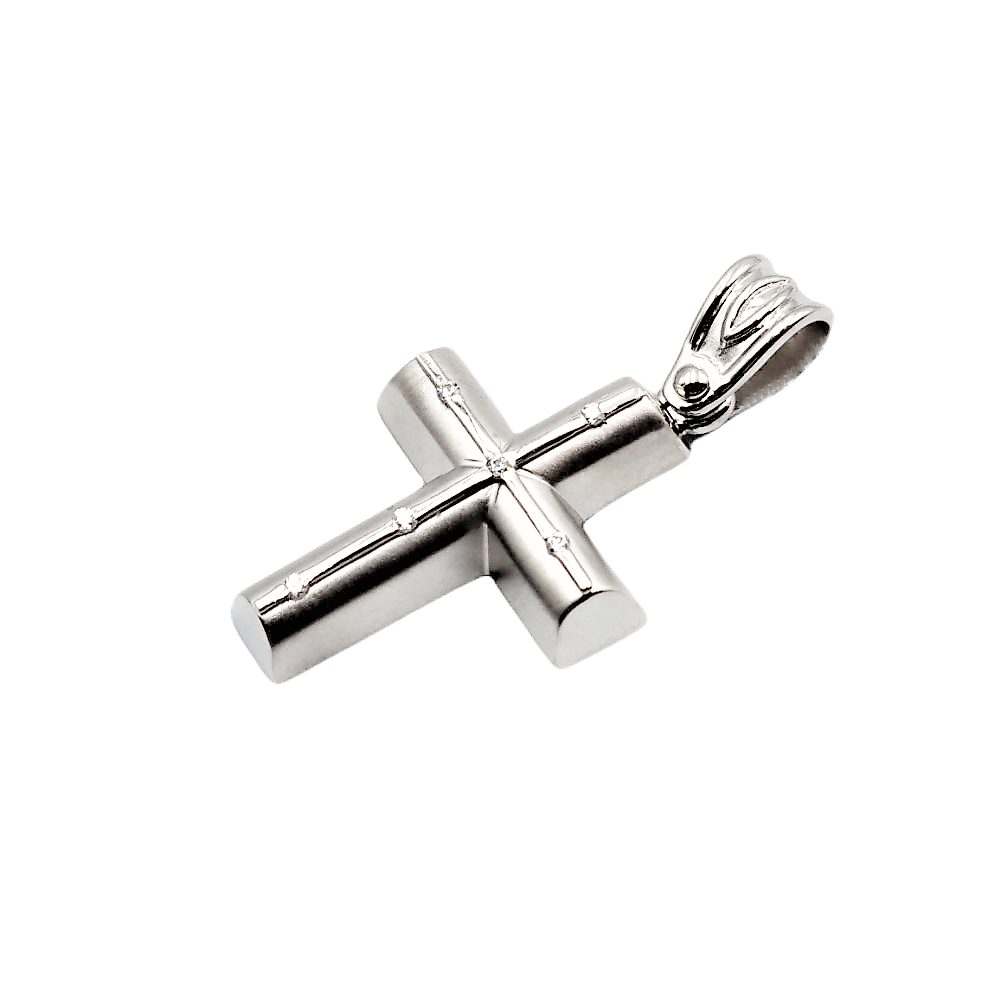 Σταυρός λευκόχρυσος κ 14 με αμμοβολή και λευκά ζιργκόν