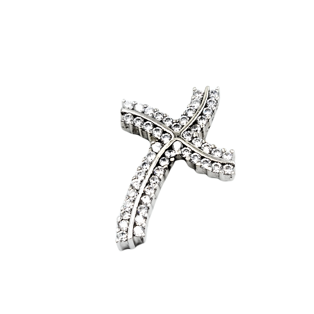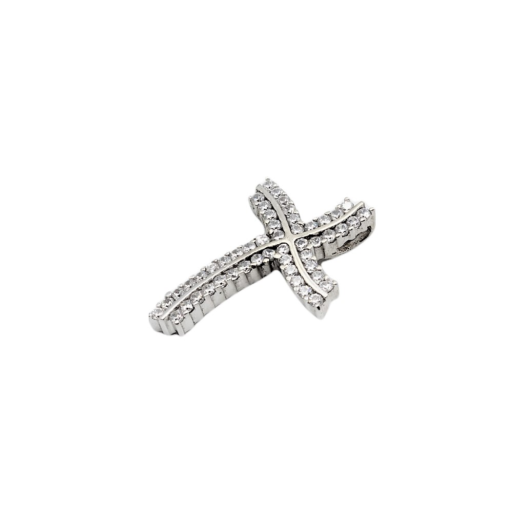 Σταυρός από λευκό χρυσό κ14 με ζιργκόν σειρέ και κυματιστό σχέδιο