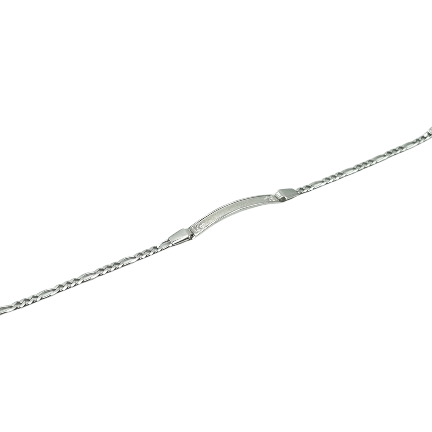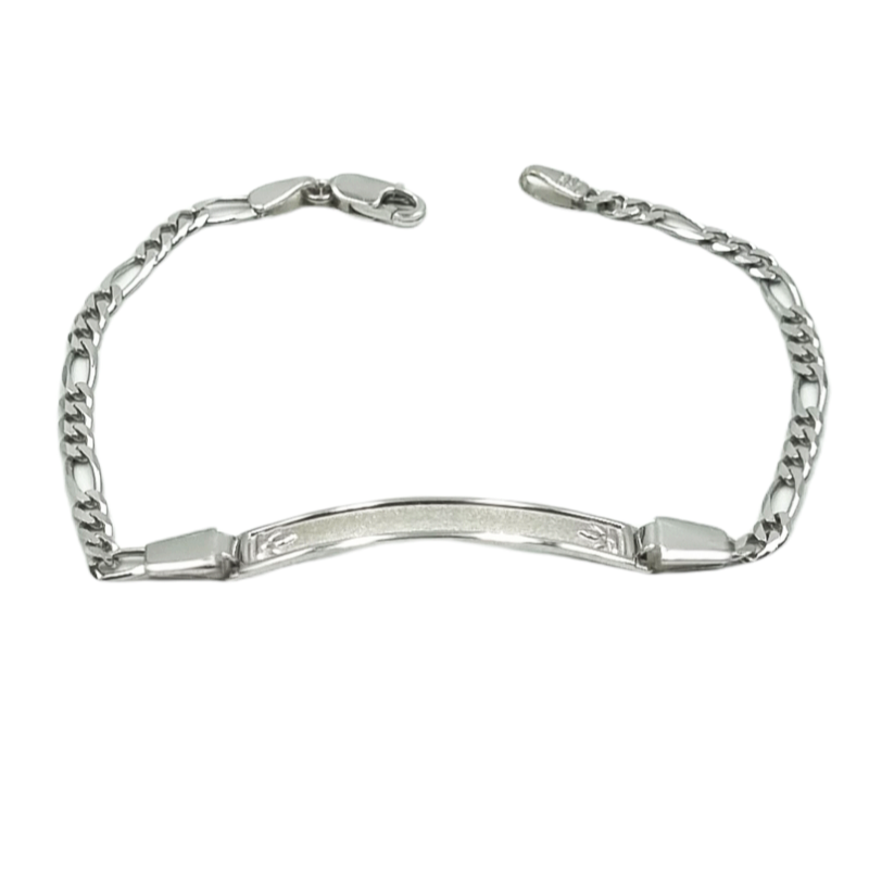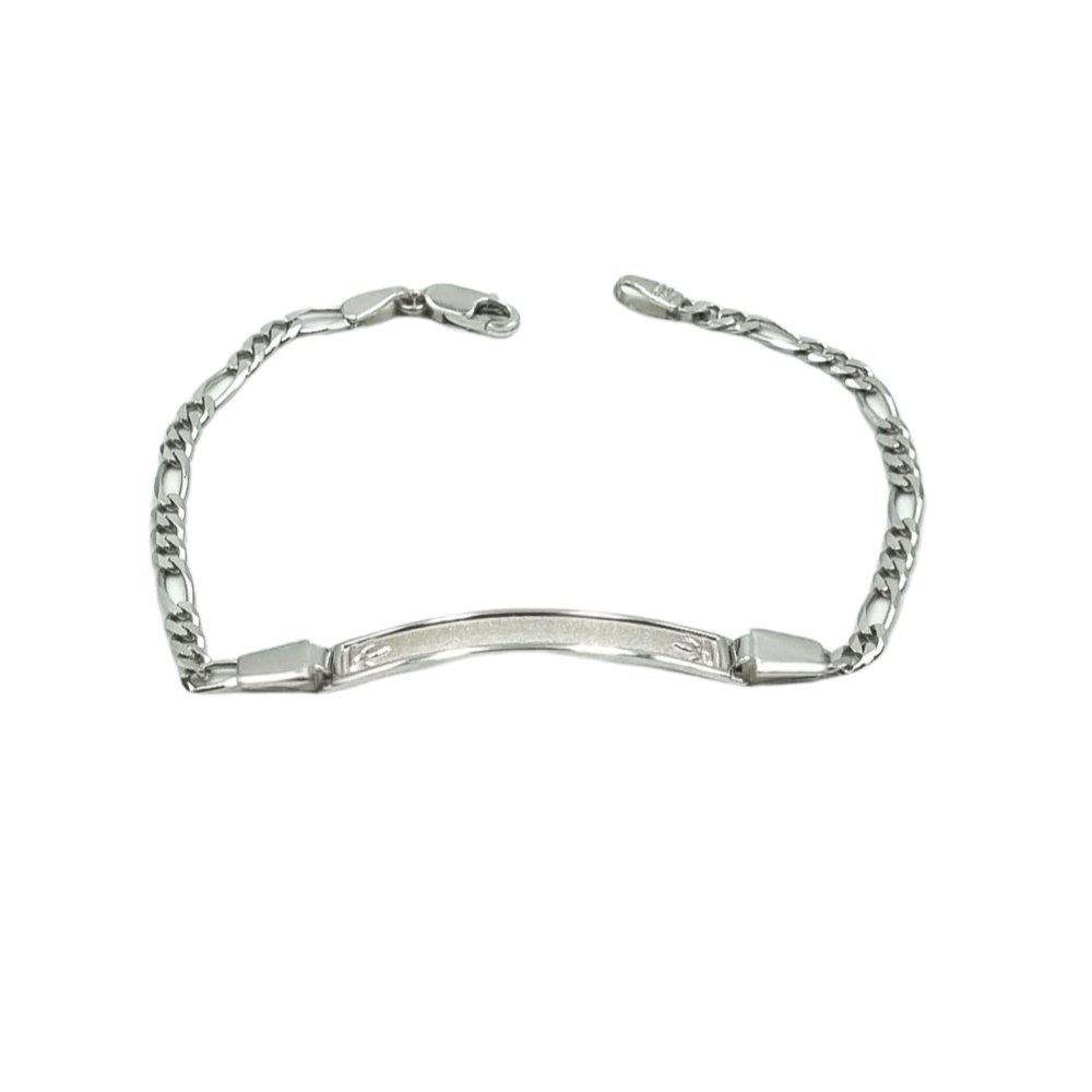 Ταυτότητα παιδική από λευκό χρυσό Κ14 με πλάκα αμμοβολή, διακοσμημένη με λουλουδάκια στα άκρα της.