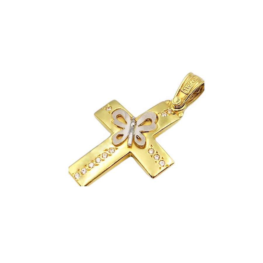 Χρώμα : Κίτρινος Χρυσός (σταυρός) / Λευκός Χρυσός (πεταλούδα)